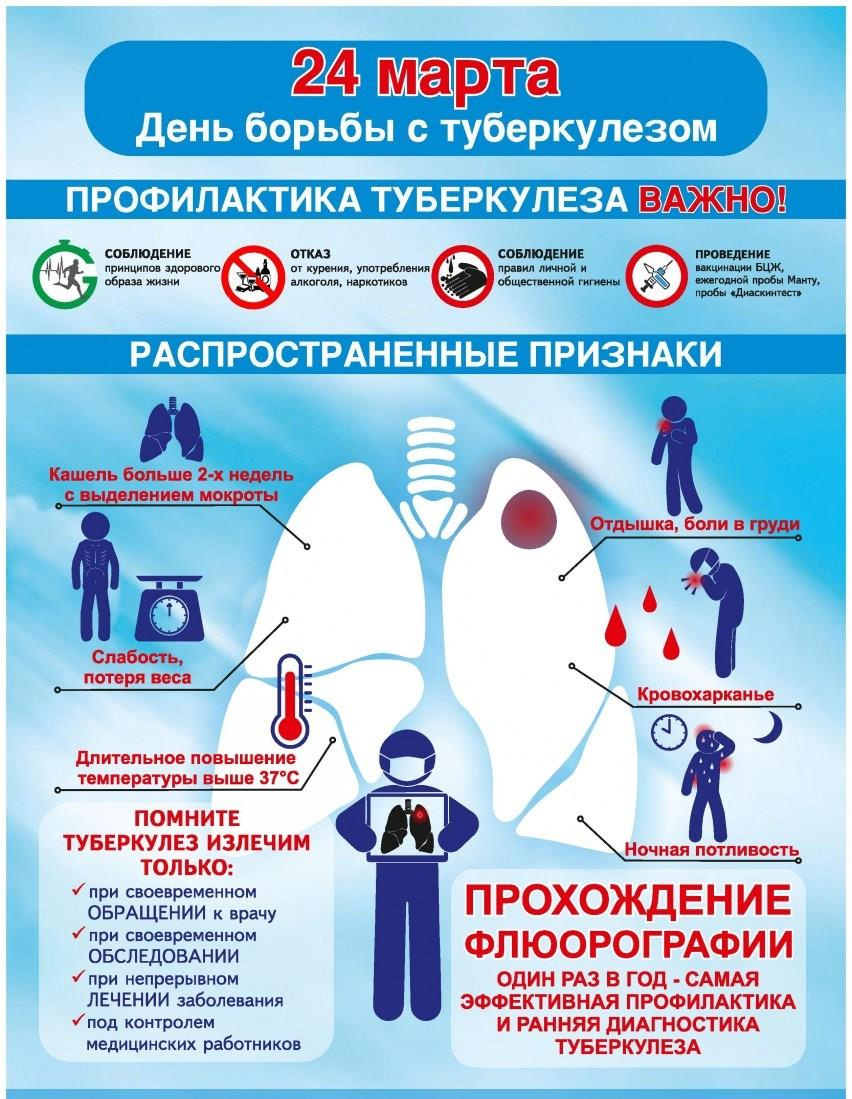 24 марта отмечается Всемирный день борьбы с туберкулёзом, цель которого – информирование населения о профилактике и раннем выявлении заболевания.